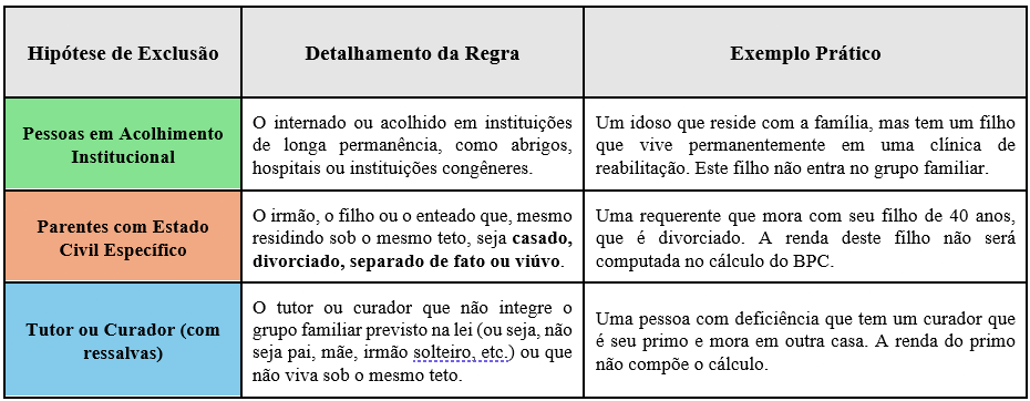 É fundamental destacar que a coabitação do requerente com um membro da família na mesma instituição de acolhimento (um asilo, por exemplo) não configura, por si só, a constituição de um grupo familiar para os fins do BPC [2].